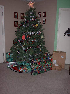 Here's a picture of our Christmas Tree (couple yrs ago in TX). We only put presents under the tree on Christmas Eve, otherwise the kids would probably tear into them! We just can't take that chance, plus they're usually not all wrapped until then. ha ha :)